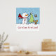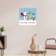 A cute snowman in a snow banked area reaches to the top of a small pine tree to put a snowflake on top. Woodland animals consisting of owl, fox and rabbit look on in this winter scene. Personalise this Christmas design as you wish. Original design by Christie Black of Creations from the Heart.
