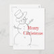 drawing of a cute snowman with a top hat and a carrot nose makes this fun snowman with text in red Merry Christmas