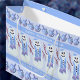 Personalise these fun blue and white Hanukkah gift bags for those extra special gifts during the eight crazy nights with family and friends. Rows of soft blue and purple dreidels accent the top and bottom of these large custom gift bags. A row of happy little Jewish snowmen around the middle of the bag wave hello while two borders of sky blue contain simple white text that can be customised, or removed, as you wish. Add the recipient's name and your name as the gift giver to make each bag unique or edit the wording to general Happy Hanukkah greetings. Cute in every way, custom Hanukkah gift bags add a special something to your gift giving as you celebrate the Festival of Lights.