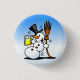 It's winter, so this snowman is having a party in the snow while he's drinking a big glass of beer.