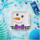 Snowman with Purple Bowtie Black Buffalo Plaid Trim, winter holiday Christmas Party Paper Plates