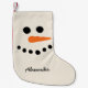 Bring a touch of winter wonder to your holiday decor with this charming, personalised snowman face Christmas stocking! This stocking features an adorable snowman face, complete with a carrot nose and warm smile, perfect for creating a festive atmosphere. Add a custom name for a unique, personal touch—ideal for family members, friends, or even your pets!