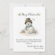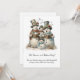 This Christmas card features a charming, vintage-style illustration of a snowman family joyfully caroling in a winter setting. The group includes two adult snowmen and two smaller snowmen, all dressed in coordinating scarves and rustic top hats adorned with greenery and roses. Each adult holds an open songbook, their mouths shaped as if singing, while whimsical musical notes float above them, adding movement and festive cheer. Soft snow, tufts of winter grass, and gentle watercolor textures create a warm, nostalgic atmosphere. ** Beneath the illustration, elegant script lettering presents a classic Christmas phrase followed by a heartfelt seasonal message, all set against a clean white background. The overall design feels cozy, joyful, and timeless—perfect for sharing holiday warmth, music, and goodwill. Personalize with your own information.