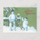 Father and son time! This vintage Christmas print depicts a father and son snowman playing in the snow.