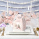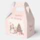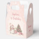 Cute Christmas 1st or any girl Birthday medium gable favour boxes with an adorable snowman and Christmas tree in blush pink with vintage vibes. Easily personalise the text. You can choose from 3 sizes of these gable favour boxes - Kate Eden Art