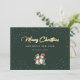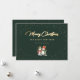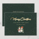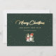 Custom green and gold Merry Christmas card featuring two snowmen against a green background decorated with a snow vignette. A faux gold foil script holiday greeting adds a more festive look to this holiday card. Easily personalise this green holiday card with your family name and text or customise it to create a beautiful business holiday card. The gold foil effect is only simulated in the artwork. More colour options available.