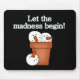 Ooops! One of the cute snowmen in the clay flower pot seems to have lost his head! If you feel a bit frazzled during the holiday season with so much to do, you'll relate to this humourous holiday snowman design on holiday T-shirts, sweatshirts, tote bags, mugs, and more that reads "Let the madness begin!". You can also add a name if you like using the customisation tool!