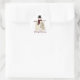 These cute holiday envelope stickers are done in a country primitive graphic art style. A festive snowman in top hat and scarf is standing next to a small pine tree. Merry Christmas in red script text, under the snowman. Personalise the text to say anything you want.