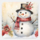A jolly snowman in a black top hat and red scarf, standing in a snowfield, creates a beautiful and charming old-fashioned Christmas sticker.