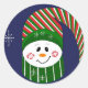 Snowman In A Long Striped Hat Classic Round Sticker