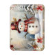 A smiling snowman in a red hat and scarf is surrounded by snow-covered trees and flowers on this cute and charming magnet. Perfect little stocking stuffer!