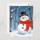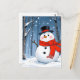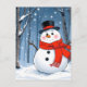A jolly snowman stands proudly in a serene, snow-covered forest, wearing a bright red scarf and classic black hat. The tranquil winter scene captures the magic of the season, evoking feelings of warmth and holiday cheer.