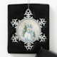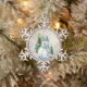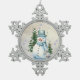 "Snowman in Falling Snow" with Rabbit and Trees Snowflake Pewter Christmas Ornament