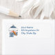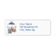 Cute snowman, head only, wearing a scarf and cap on this winter and holiday / Christmas return address label. Customisable.