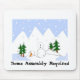 This little snowman could use a helping hand. Put his head back on his body please! Trees with snow in the background.