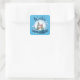 Cute snowman in a snow globe with snowflakes on aqua blue background.