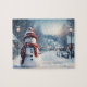 Snowman in the village. Winter scene. Jigsaw Puzzle