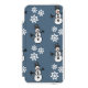 Seamless pattern illustration for Christmas with cute, smiley snowman and white stars decoration. It is possible to change the background colour and to add different one to the design with your choice.