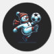 Snowman Kicking A Soccer Ball Classic Round Sticker