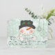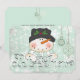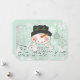 Snowman Let it Snow Christmas holiday greeting invitation card features a background of soft blue with lots of white snowflakes, a cute snowman with black top hat and carrot nose, and text that reads Let it Snow! The back features two old fashioned ornaments and snowflakes on blue with an area you can add your text message and name(s). We have matching postage, stickers, return address labels, and envelopes.