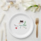 Snowman paper plates. Hat, scarf, buttons and carrot nose make up this invisible snowman who blends in with his snowy white background. In one of his stick arms, he holds a red heart on a string. A minimalist, hand drawn image that is perfect for any winter gathering.