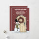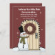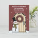 A delightful, wintery design featuring a whimsical snowman dressed in his scarf and hat at his front door. The door has a beautiful berry wreath and a light snow is falling.