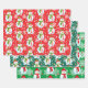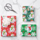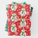 Snowman on Red & Green White Snowflakes Christmas Wrapping Paper Sheets