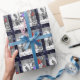Christmas holiday wrapping paper. Snowman artist painting a portrait of a rabbit hockey player. ⭐PERSONALIZE this template with your Holiday Wishes Year message and names. Same on both sides. ⭐CUSTOMIZE IT further to make more changes. If changing the size, Edit or Customise it to make sure everything stays within the printing dashlines. ⭐TRANSFER this design to any product. Double-check that the size of the image does not have a ▲warning symbol. That means that the image needs to be scaled down. Visit all my stores at bit.ly/SandyspiderStores (cut and paste).