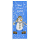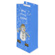 This is a fun seasonal wine gift bag featuring a cute cartoon snowman with a scarf and Santa hat, and heart shaped buttons. Behind him is a snowflake filled, pretty blue sky. The text, in white and dark blue, says Merry Christmas on one side and from (your name) on the other. All the text, however, may be custom changed to your own taste. Both sides of the bag have the same image. *Thanks to Real Deal Clipart for the clipart used to create this design.