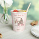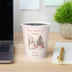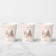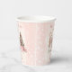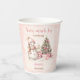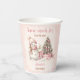 Cute Christmas Girl Baby Shower Paper Cups featuring a lovely snowman, Christmas tree with gifts and snow in blush pink with vintage vibes. Easily customise the text - Kate Eden Art