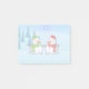 Two snowmen decked out in red and green scarves and hats playing in a winter wonderland.