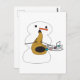 Do you like cute postcards? Are you a fan of the saxophone? A snowman rocks out on the saxophone while pink, blue and purple music notes float out.