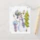 A whimsical scene with a Christmas tree, present and a snowman looking up at the falling snow on matching US Postage Stamps, Note Cards, Postcards, Buttons, Coffee Mugs, Stickers, Magnets, Tote Bags, Mouse Pads, T shirts and Sweatshirts. Click on the Customise It link to personalise any item by adding a name or your own message.