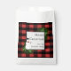 Add rustic charm to your holiday celebration with this festive Red Snowman Buffalo Plaid Party Favour Bag. Featuring an adorable snowman in a classic top hat and scarf, set against bold buffalo plaid and gingham pattern accents. A cheerful Merry Christmas greeting is displayed in playful festive typography, with space to personalise it with your family name. Accented with seasonal holiday pine botanicals, this design brings warmth and whimsy to your gift giving.