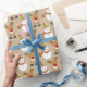 Snowman Reindeer Pattern Red Green White Wrapping Paper