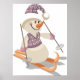 A snowman skiing with skis, poles and a hat. This design looks really effective on these Poster