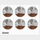 Stickers had a glossy finish which gave them a very professional look. The colour is perfect. And they are the exact size of my lip balm lids. Printing is crisp and clear. Will definitely be ordering again.