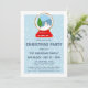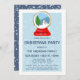 This adorable and modern Christmas party invitation is great for the holiday season. It features a hand-drawn snowman snowglobe baked cookie illustration in red, blue, and green on top of a pastel blue background with white falling snowflakes on the back are similar snowflakes and navy blue sky. It's cute, artsy, fun, and playful for the winter season!