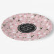 Adorable snow people with snowflakes, holly, and candy canes on pink make a great fun winter holiday Christmas personalised party dinner paper plate, with a sweet retro feel and the words (Your family name) Family Christmas, ready to customise with your name and date, or any message of your choice.