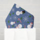 Adorable snow people with snowflakes , holly, candy canes on blue make a great fun winter Christmas tissue paper for gift wrapping or crafts and decoupage.