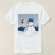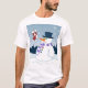 Snowman illustration in a Christmas scene with his own personal stocking pegged and hanging from a washing line.