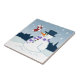 Snowman illustration in a Christmas scene with his own personal stocking pegged and hanging from a washing line.