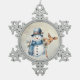 "Snowman Surrounded in Holly" with a Fawn Snowflake Pewter Christmas Ornament