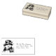 Rubber stamp with an image of a cute Snowman wearing a top hat and scarf on a snowy winter day. Add your information to personalise.