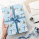 Snowman & Tree Light Blue Christmas Wrapping Paper