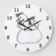 Snowman wall clocks add to the fun at Christmas time. Snowman is Steamy Raimon original cartoon art.