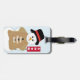 A fun luggage tag featuring a snowman holding a snow sign, customise as desired.