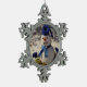 Snowman with Blue hat, gloves and Scarf Snowflake Pewter Christmas Ornament