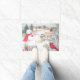 Illustrated snowman welcomes Winter with open arms. Enjoy the magic of the season with this charming snowman in winter garden. Friendly snowman shares joyful message with birdies & bunny friends. Currier & Ives illustration by judithchengart. A welcome doormat that will surely charm.