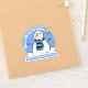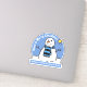 Christmas greeting sticker. Fun cartoon style snowman on a sunny winter's day, and with a seasonal message you can personalise. Add your own greeting, sign-off, or strap-line at the bottom of the sticker. Make this item personal to you and use it do decorate gifts or other items.